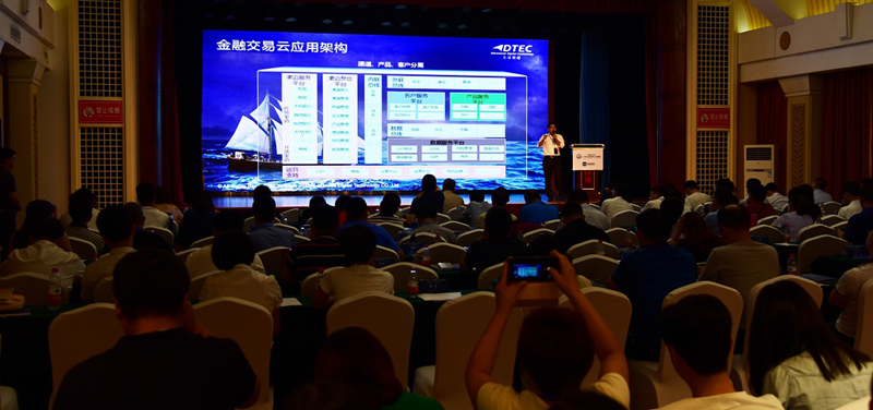 研讨会现场,龙8国际官网研发中心副总经理张朝金围绕“金融交易云探索与实践主题进行演讲,阐述了龙8国际官网金融交易云的设计思想、总体架构、解决方案及实际项目应用案例等,为现场来宾呈现了龙8国际官网在金融交易云方面的技术实力。
